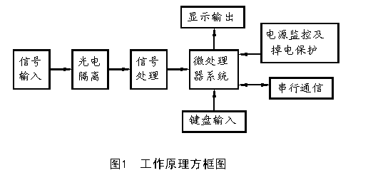 過電壓在線監(jiān)測儀工作原理方框圖如圖1所示。旦被保護(hù)的設(shè)備產(chǎn)生過電壓,組合式過電壓保護(hù)器通過增加自身電流泄放過電壓能量保護(hù)設(shè)備,保護(hù)器動作電流經(jīng)高性能信號傳感器輸入至監(jiān)測儀。該輸入信號經(jīng)光電隔離、信號整形、輸入至微處理器,微處理器旦接受到該信號,即刻對三路輸入信號進(jìn)行查詢,并對查詢的結(jié)果和相應(yīng)的時間進(jìn)行記錄和處理。通過鍵盤輸入可對系統(tǒng)的初始時間進(jìn)行設(shè)置;可任意查詢記錄的結(jié)果;必要時可對存儲的記錄結(jié)果進(jìn)行清零處理。顯示輸出部分包括六位數(shù)碼顯示和四路信號燈指示,正常情況下,數(shù)碼部分顯示實(shí)時時間,運(yùn)行信號燈閃亮;發(fā)生過電壓時,過電壓相信號部分指示當(dāng)前放電相情況;查詢時顯示查詢結(jié)果。電源監(jiān)控及掉電保護(hù)電路可保證在系統(tǒng)復(fù)位和斷電的情況下保存全數(shù)的記錄結(jié)果。
