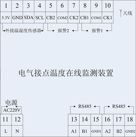 無線溫度接收模塊背面接線說明