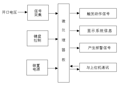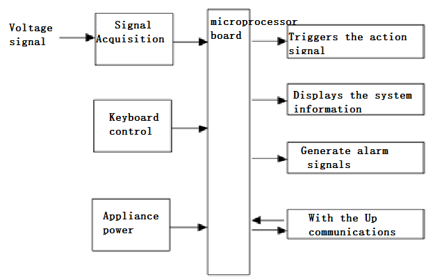 Micro-arc unit is based on voltage transformer for Voltage Signal and design of the product. Unit overall structure is shown in the following figure: the micro-processing unit modules, Signal Acquisition Module , keyboard control module, power the unit module, LCD display module, alarm signal modules and communications modules.
