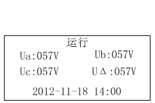 當(dāng)裝置上電后,將顯示系統(tǒng)運(yùn)行電壓和當(dāng)前時(shí)間??梢酝ㄟ^方向按鍵來進(jìn)行顯示界面切換。